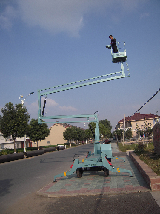 GKT-12型柴油機曲臂式液壓升降平臺, 是采用柴油機為動力,電啟動,全自動液壓支腿,360度旋轉,自行走,自升降,上下均可操作。