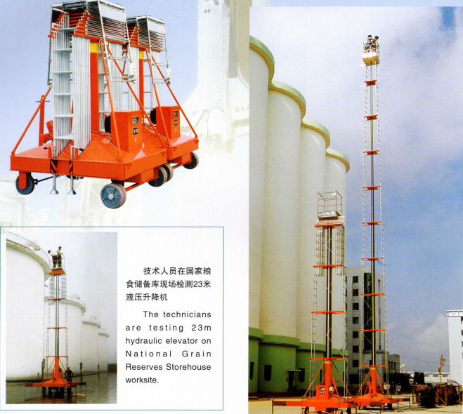 套缸式高空作業臺為多級液壓缸直立上升,液壓缸高強度的材質和良好的機械性能,塔形梯狀護架,使升降臺有更高的穩定性。即使身處20米高空,也能感受其優越的平穩性能。 適用場合:廠房、賓館、大廈、商場、車站、機場、體育場等 主要用途:電力線路、照明電器、高架管道等安裝維護,高空清潔等單人工作的高空作業。 動力選配:交流220V(標準配置)、交流380V電源、直流電源、手動泵。 |